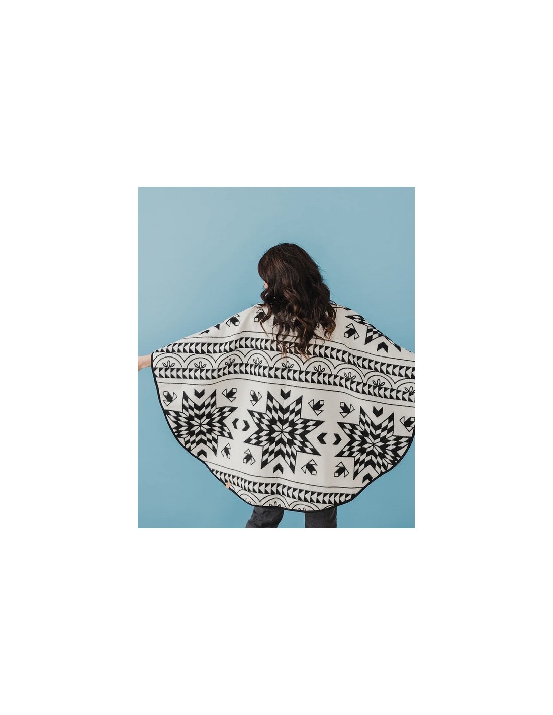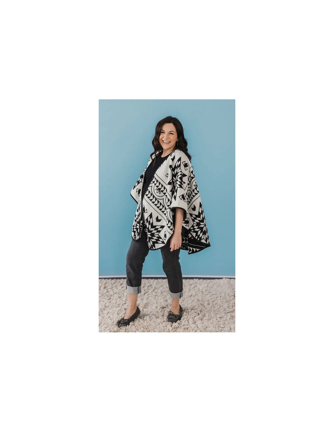 This reversible one size poncho is made from recycled fabric (50% recycled acrylic, 30% polyester, 20% recycled wool) and is perfect for fall. Definitely an essential you'll keep forever.