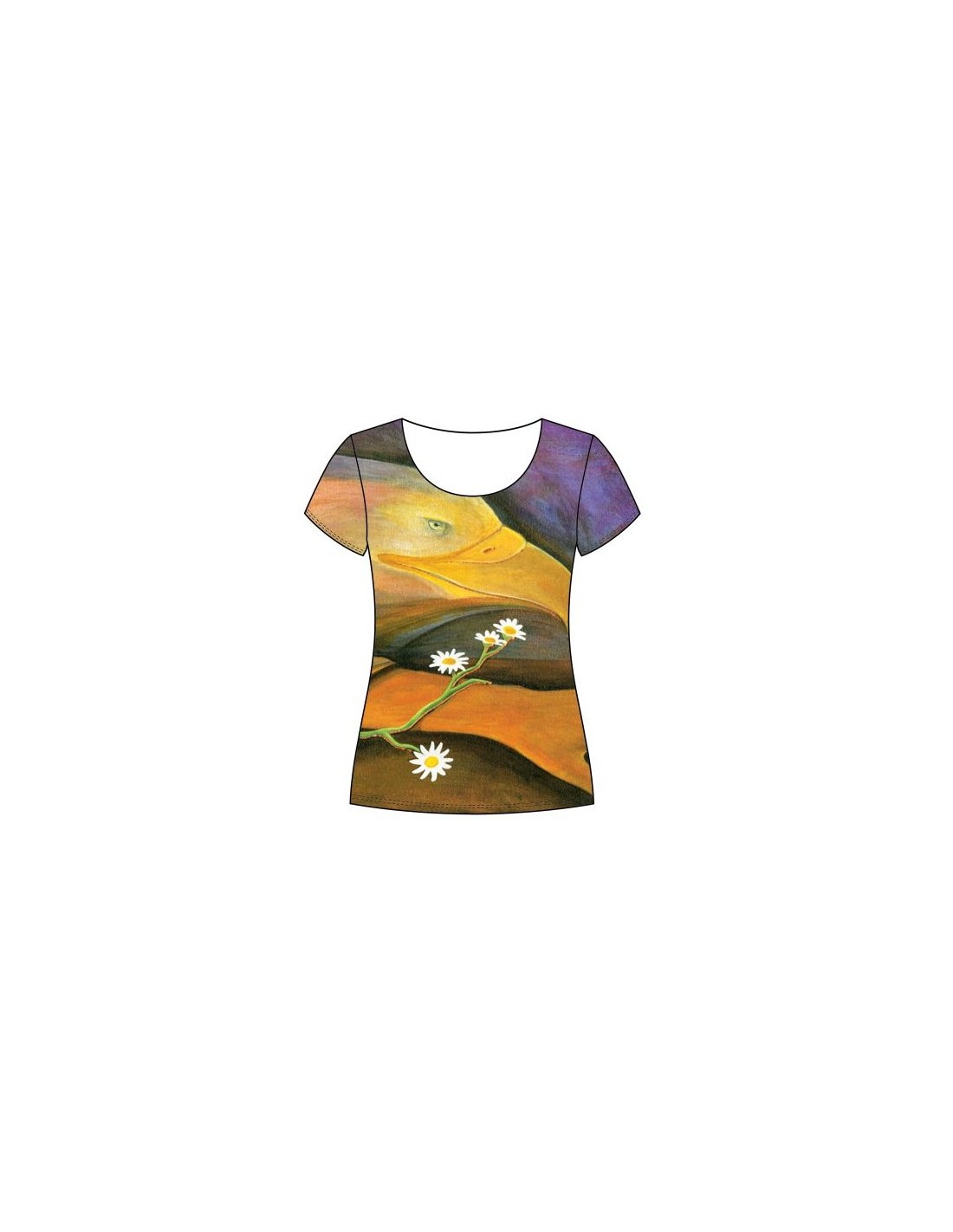 "Journey to the Spirit World" by Nathalie Coutou. Casual Round-Neck Knit Tee printed by sublimation for high resolution, 95% Polyester, 5% Elasthane. Machine wash in cold water on delicate cycle, hang dry.