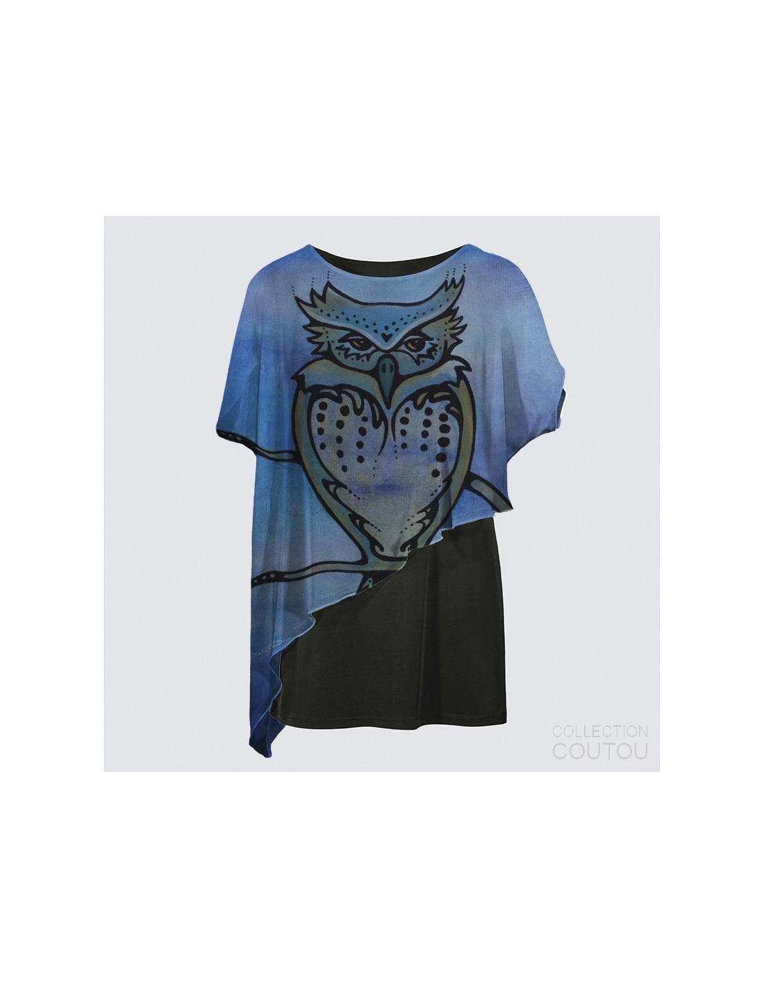 "Wisdom Keepers" by artist Nathalie Coutou printed on a chiffon cape with black tank, 96% Polyester, 4% Elasthane. Machine wash in cold water on delicate cycle. Hang dry.
