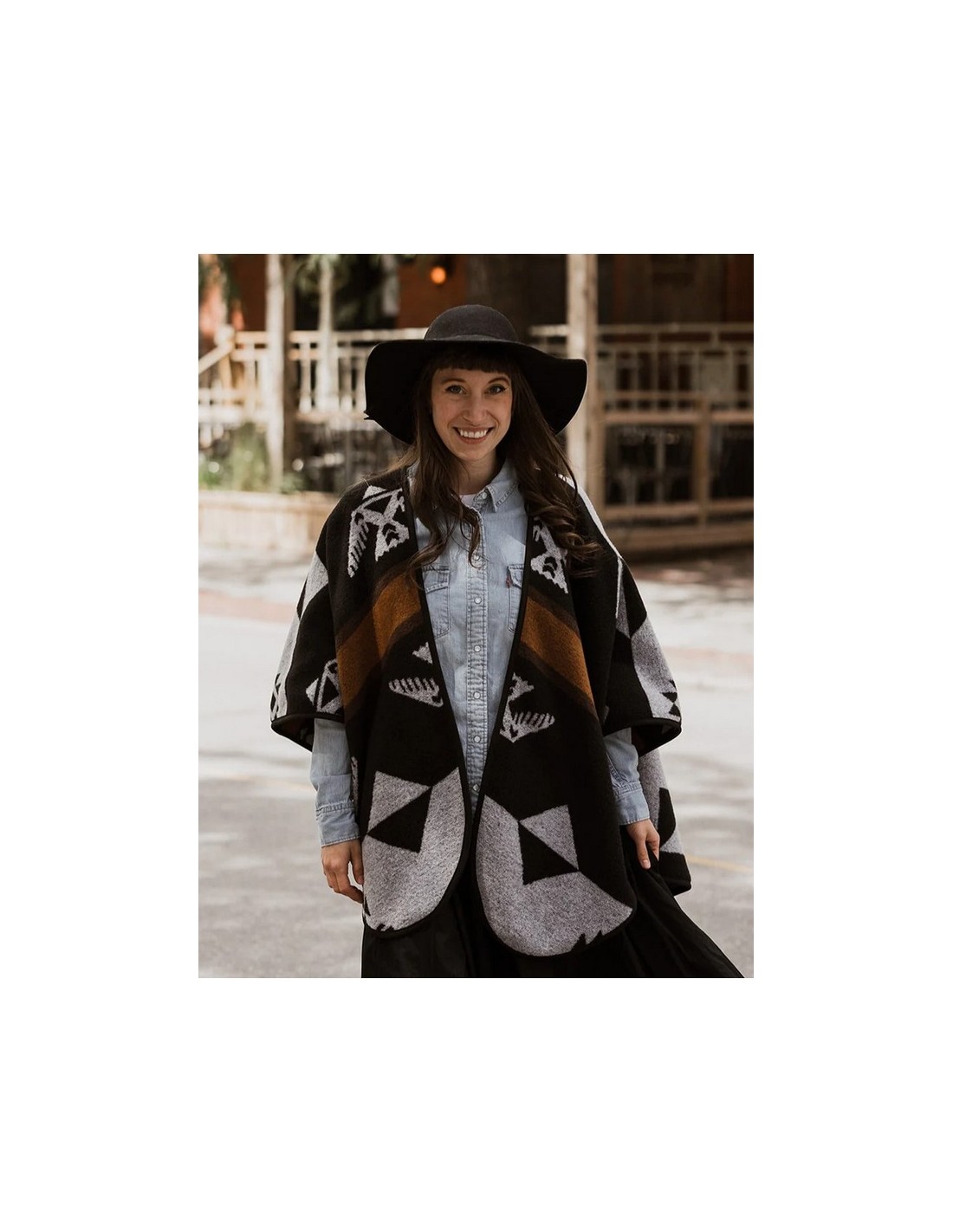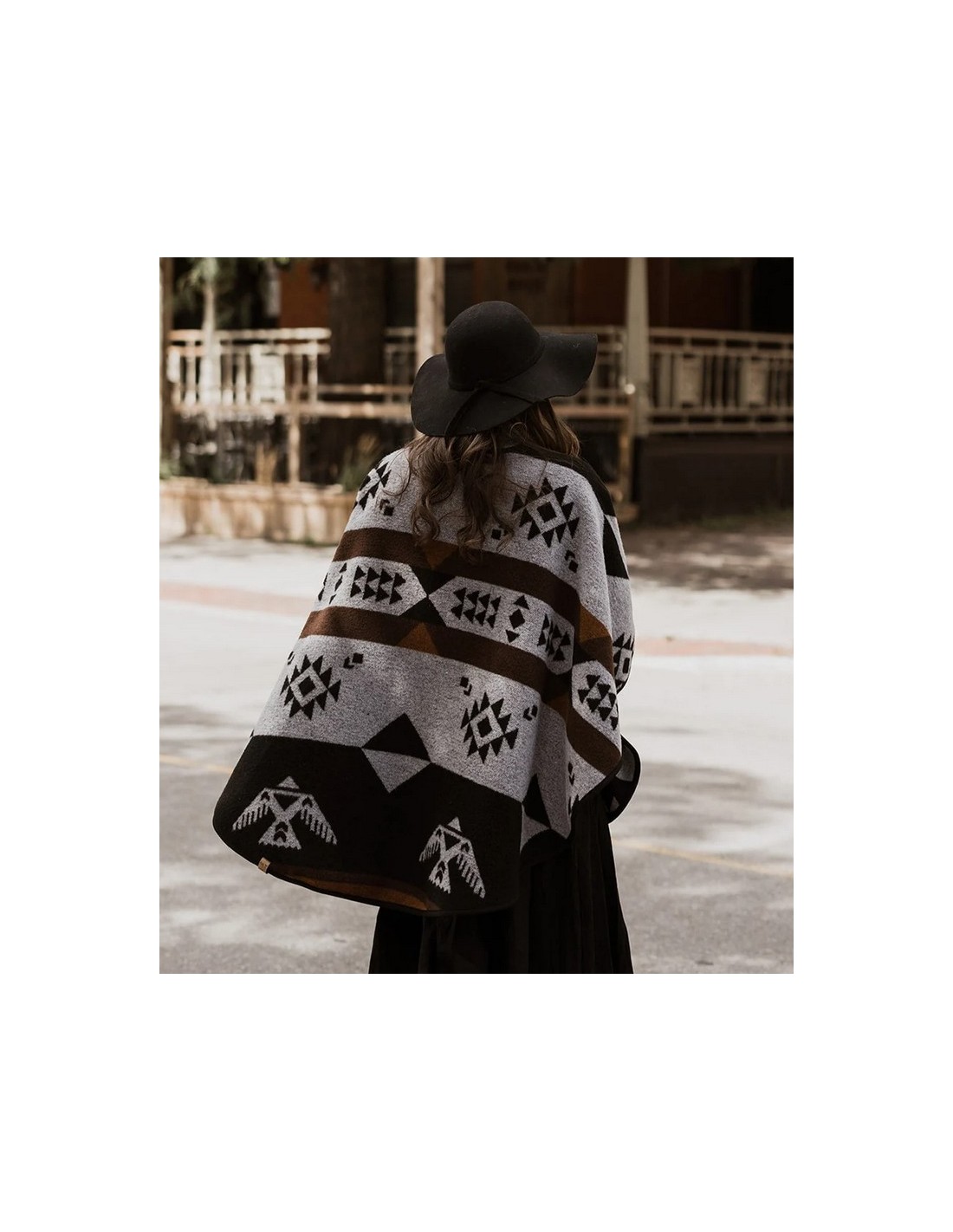 Ce poncho réversible de taille unique est fabriqué à partir de tissu recyclé (50% acrylique recyclé, 30% polyester, 20% laine recyclée) est parfait pour l'automne et est définitivement un essentiel que vous garderez pour toujours.