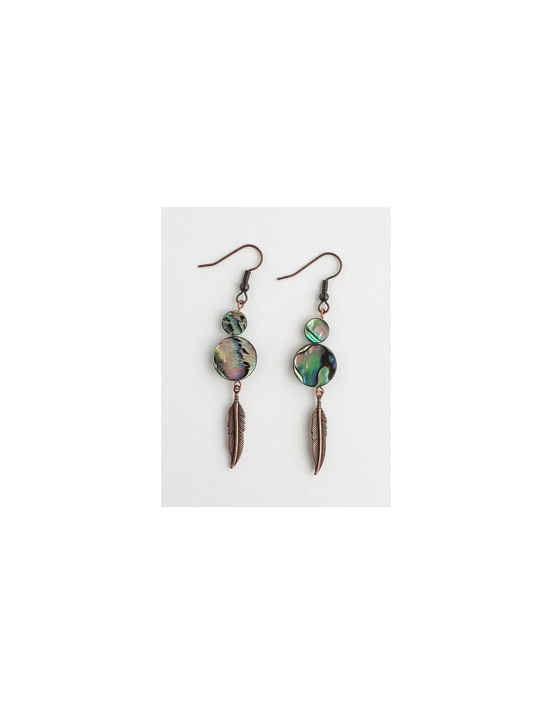 Collection Coquillage Boucles d'Oreilles - Coquille d'Ormeau MN103 8,95 $ Boucles d'oreilles en coquillage d'ormeau et plume de cuivre. Fait au Canada. Voir
