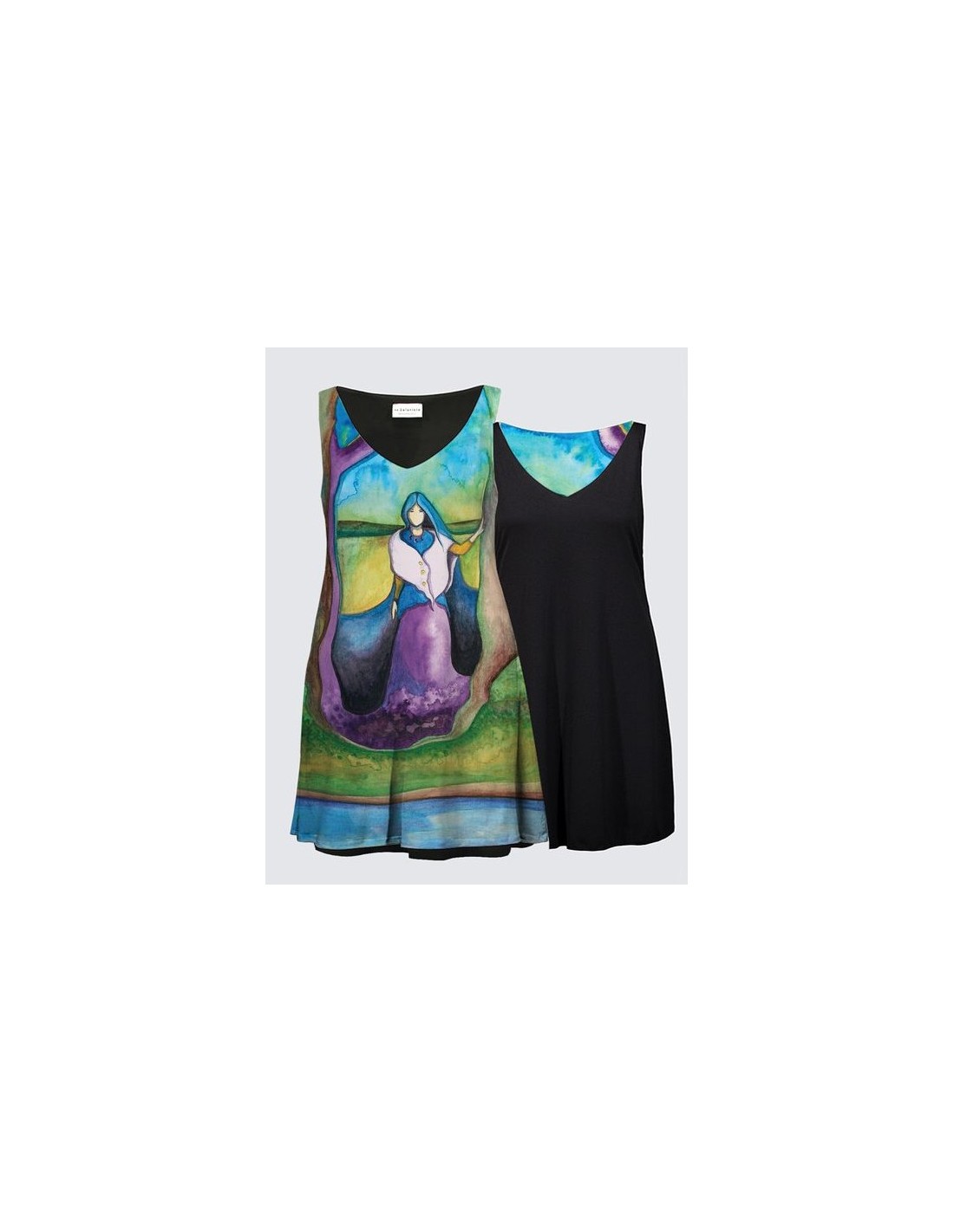 "Gardienne de la Terre" par Nathalie Coutou. Robe réversible. Peut être portée de 4 façons. 96% Polyester, 4% Élasthanne. Lavez à la machine au cycle délicat à l'eau froide. Séchez à plat.